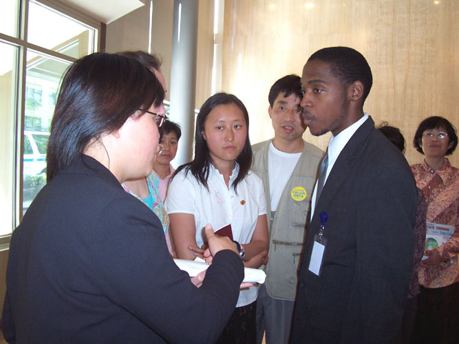 ![]() 新西兰法轮功学员在联合国大楼内请求与安理会主席见面 | ![]() 新西兰法轮功学员在联合国大楼前准备递交请愿文件 |