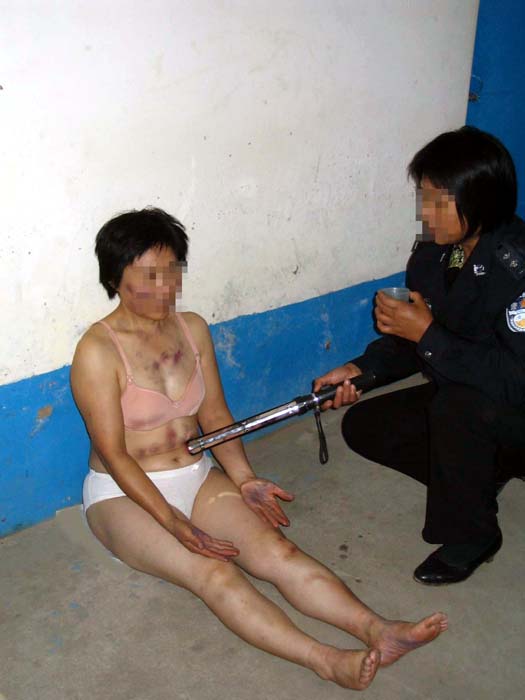 看守所的一位女恶警(不知姓名)刚开始是软磨硬套的用伪善来关心,目地是套姓名和住址。但当阴谋没有得逞时,恶警就恼羞成怒,对杨丽娟用电棍动刑。