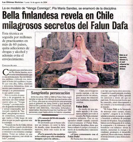 ![]() 前“Venga Conmigo”时装模特儿琵雅-玛莉雅-珊达斯热爱修炼,美丽的芬兰裔女子在智利介绍法轮大法神奇的秘密 |