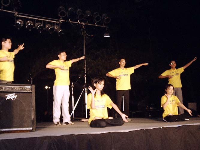 ![]() 法轮功功法表演(团体照) | ![]() 功法表演特写 |