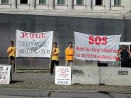 【明慧网2004年9月4日】2004年9月1日上午,贾庆林到奥地利国家议会。法轮功学员在议会前打开横幅揭露江××及贾庆林等对法轮功学员的残酷。奥地利议会位于维也纳内城环线上,是维也纳城内交通最繁忙的地段之一。过往的车辆都看到了学员们举着的横幅,有的还鸣笛表示支持。许多过往的行人得到了介绍在中国发生的对法轮功学员的迫害的真象材料。