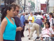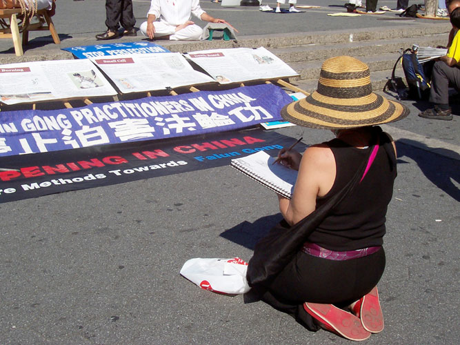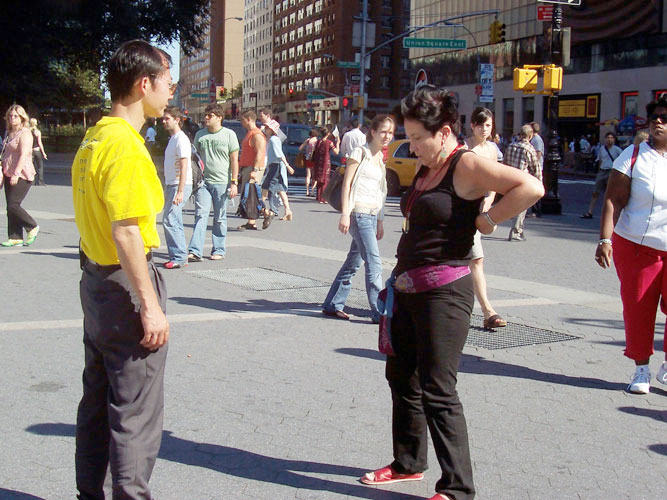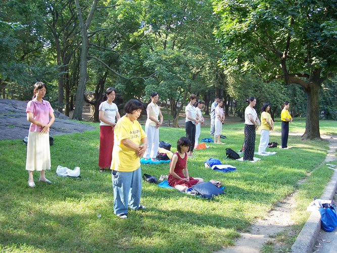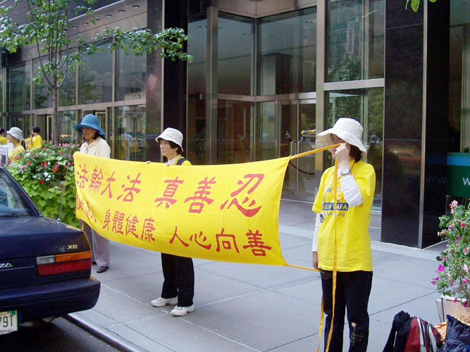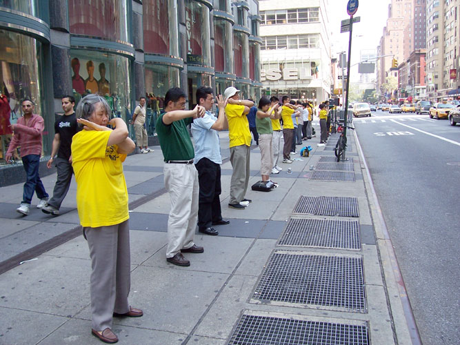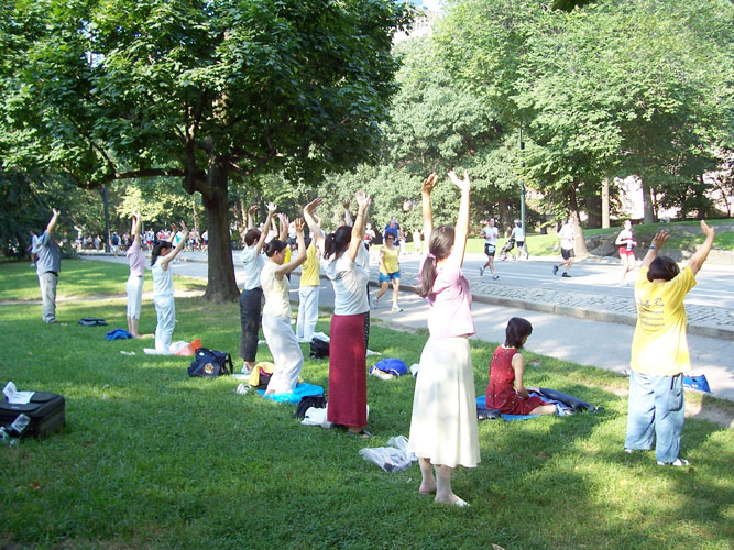 法轮功学员在纽约讲真象,还包括中国传统舞蹈和腰鼓表演。在纽约最大的公园──中央公园里,法轮功学员还向路人示范功法。有5万名参加长跑的参赛者看到了学员的和平炼功的场面。时代民主报9月2日报道,在广场旅馆(Plaza Hotel)对面的中央公园,有一小群人在安静的请愿,他们是在抗议发生在中国的对法轮功学员的迫害。