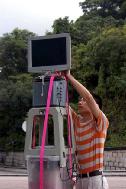 ![]() 为了让游客可以看到电视画面,法轮功学员用现成的材料加经验做出了这个「电视架」 |