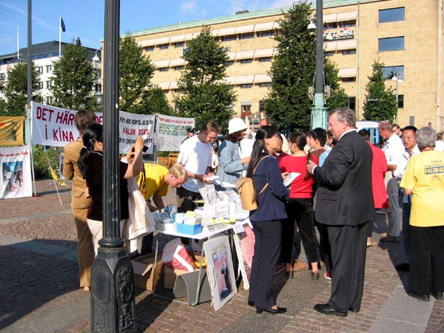 市执行委员会成员可以从位于广场旁边的市议会大楼的办公室窗口看到展览。市执行委员会成员艾里克(Erik J Lithander)先生是一位善良的绅士,他几次参观反酷刑展以表达他的支持。
