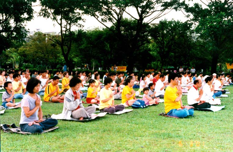隔年五月有一位学员提供场地办九天班,接着很多位电信局的员工进来修炼,从那时候起每个月举办九天班,迄今未曾中断过。炼功点的人数越来越多,不久第二个炼功点美国学校成立,紧接着第三个炼功点在中山公园设立,再来是东宁公园。