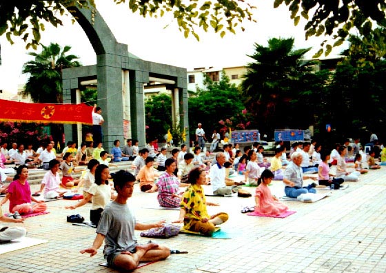 1999年7月20日大陆江氏集团下令镇压法轮功,媒体大幅报导,台湾人对法轮功感到好奇,纷纷前来了解,每个月九天班都大爆满,修炼的人口激增,炼功点也不断扩增,目前台南市市区已有十多处炼功点。在台南市外围的台南县各乡镇,经过台南市学员持续的前往洪法教功,几乎每乡镇都有炼功点,连最偏远的、人口最少的水上乡,都在今年成立了炼功点。
