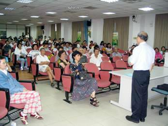 ![]() 2002年寒假台南市永华国小教师研习 | ![]() 2002年台南县长莅临新泰国小教师研习 | ![]() 学员们专心听李老师讲法 |