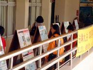 在会场外及台南启聪学校的外墙还挂出了法轮大法洪传世界及大陆江氏集团酷刑虐待法轮大法学员的图片,并以大银幕播放法轮功真象影片,明白真象的民众,都同声谴责江氏集团迫害法轮大法的暴行。