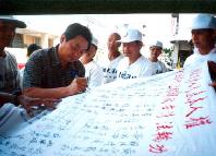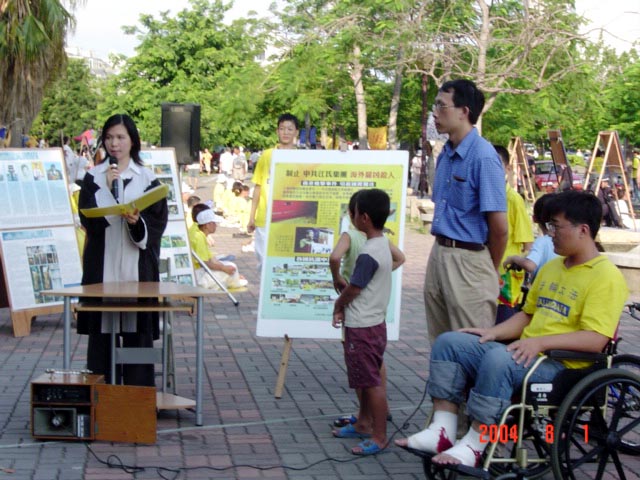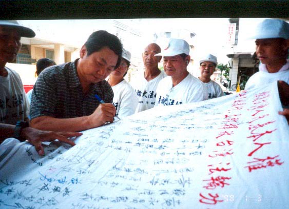 ![]() 2003秋年营救台湾同修征签获得民众热烈支持 | ![]() 2004年8月1日行动剧谴责南非枪案 |