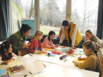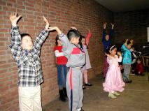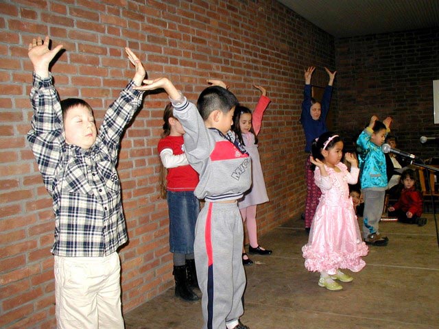 由于德语区法轮功学员居住分散,平时很难有条件为小弟子办明慧学校,为了让小弟子也能在大法中精進,同时让小弟子的父母能顺利的参加各项活动,四位女学员主动办起了明慧学校,小弟子在明慧学校里学法、唱歌、画莲花、学写中文“真善忍”,并在31日迎新晚会上表演了合唱“法轮大法好”、背诵《洪吟》和演示第一套功法。在晚会上表演的其他法轮功学员大多是头一次参加聚会的新面孔,他们的加入使晚会内容丰富多彩。