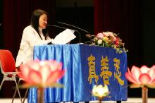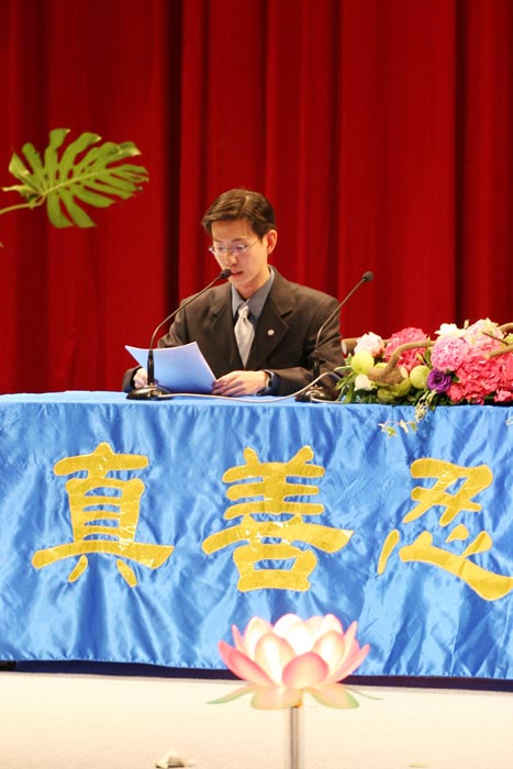 “亿万神佛降世尘,人间万古现天门,佛光七载遍中土,五年风雨除恶神,苦过方知人心重,难中愈感主佛恩,救度众生尽舍去,今开新宇万世春!”在两位主持人气势磅礴的开幕词下,揭开这次台湾修炼心得交流会的序幕。今年共有二十二位学员发言,其中包括律师、校长、教授、电脑工程师、博士生、教师等各界人士,他们自身的体悟、感受,让在场所有人士感动万分。