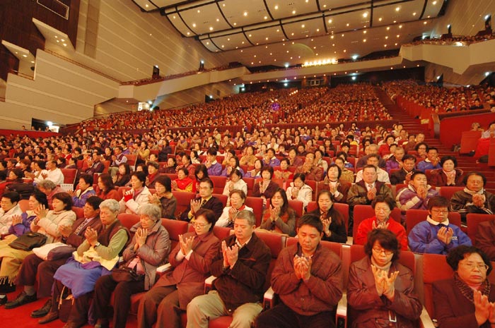 法会最后,在主持人的带领下,全体大法弟子再度一起朗读《洪劫》:“法正洪穹除旧尘 天地茫茫处处春 悠悠万古洪势过 再看新宇佛道神”。五点五十五分,全场肃静,六千多名学员和全球法轮功弟子一起带着救度众生的慈悲,集体发出最纯正无漏、坚定不破的正念,圆满结束2005年台湾法轮大法修炼心得交流会。