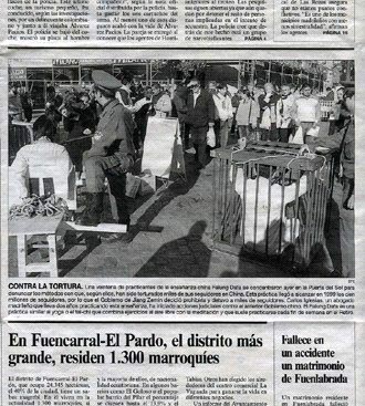 西班牙《国家报》1月9日刊登了法轮功学员反酷刑展的图片报道,报道说,昨日一些法轮大法修炼者聚集在太阳门广场,展示并揭露在中国对法轮功修炼者迫害的各种酷刑。据他们介绍,在中国已有几千名法轮功学员遭到酷刑并被迫害致死。
