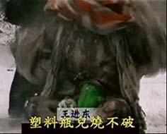 王进东两腿中间装满汽油的塑料雪碧瓶居然完好无损