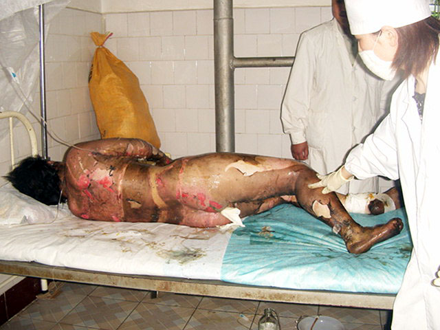 自焚者的遭遇对他们自己和家人来说都是悲剧,我对他们充满同情。这次惨案的内幕由于中共当局的隐瞒和封锁目前仍不为世人所知,但是新华社和中央电视台向公众报导的版本却是一出处处穿帮的伪劣电影。明慧网上对此已经有大量的分析,我记忆最深刻的几个镜头有:在医院里,已经被割开了喉咙的可怜的小女孩刘思影能够吐字清晰的说话和唱歌,创造了医学奇迹。而所有被严重烧伤的人都被紧紧的用纱布包裹,完全违反医学常识。这部伪劣电影的主角王进东在自焚时衣服已被烧焦,但是他腿间的盛满汽油的雪碧瓶却完好无损。在他喊出那句似是而非的口号之前,警察手中的灭火毯却在他头上悠闲的摇晃很久,没有丝毫灭火的急迫。