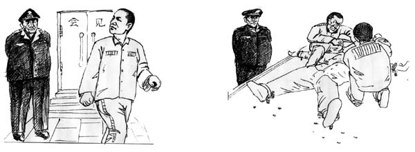 ![]() 图为酷刑之一:头上套塑料袋的描绘 |