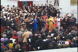 在马丁-路德-金博士生前传教的埃伯奈萨教堂举行的周年纪念仪式上,法轮功学员代表Becky Yao和哈佛大学梅森学生张而平先生应邀出席纪念仪式。张而平先生表示:“我们作为亚洲的唯一代表而且又是法轮大法修炼者被邀请来参加这次纪念活动非常有意义,因为我们法轮功在中国也是受到无辜的迫害,金博士倡导的非暴力运动也是我们现在每天在做的事情。很不幸的是,不管是美国的民权运动还是中国的人权运动,还有一些阻力。特别是在我们中国,法轮功学员还没有正当的修炼权利。我记得我小时候就看过马丁-路德-金的‘我有一个梦想’,里面所梦想的平等、自由,我们希望在中国能够尽早得到,特别是那些无辜受害的百姓。”