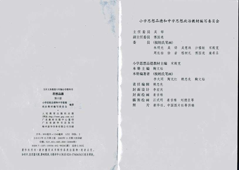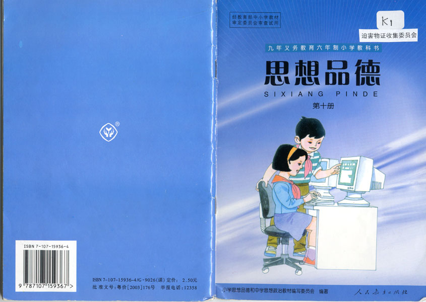 【明慧网二零零五年一月五日】(明慧记者欧阳非撰稿)最近看到“人民教育出版社”2003年11月第三次印刷的“九年义务教育六年制小学教科书”中的《思想品德》(第十册),十二课中赫然有一课(第六课)是专门用“天安门自焚骗局”来诽谤法轮功的。其中,假借12岁的小思影的嘴,大肆煽情,激发小孩对法轮功的憎恨和恐惧。这一幕,使中共一脉相承的流氓本性再一次跃然纸上,与文革时煽动上小学的我们这一代人仇恨地主婆、反动派、美帝、苏修、孔老二,手法惊人的相似,只是“化妆技术”更加成熟了。
