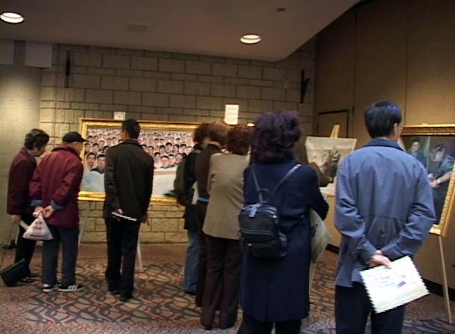 在画展中,记者看到了多伦多法轮功学员曾晓楠,他在中国的母亲因修炼法轮功、向人们讲真象被江氏集团非法判刑8年,在被非法关押期间,他母亲曾遭到体罚,并被注射破坏神经的药物。曾晓楠在接受采访时认为画展是很好的讲真象的办法,他说,“这些作品的视觉效果会带给人强烈的震撼。例如酷刑那一部份,让人们真实的看到了发生在中国的迫害。”