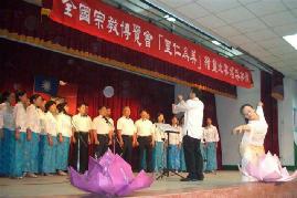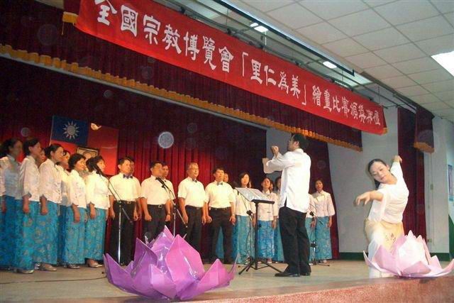 2005年10月16日下午,天气晴朗,法轮大法学员参加在云林斗南一场大型的宗教博览会。法轮大法──是有助于人们获得身心健康的修炼功法,在台湾获得各界高度的肯定,第二届宗教博览会主办单位再度盛情邀约法轮功出席此届活动。这次演示活动不同以往,法轮功学员首度以艺术表演形式参加,更是引人注目。