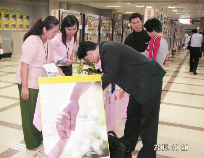 ![]() 签名营救受迫害法轮功儿童 | ![]() 小学生参观展览合影 |