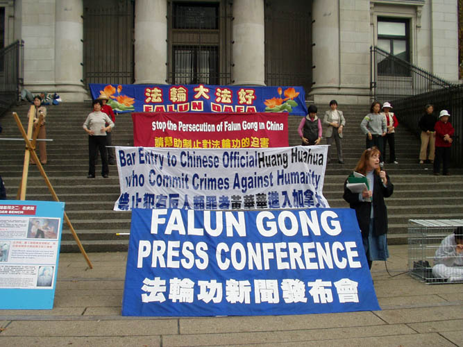 黄华华在到达加拿大温哥华的第二天(10月21日)上午,就在其去维多利亚岛(卑诗省府所在地)的船上,接到了卑诗省最高法院的传票。法轮功学员于21日中午时分在温哥华市中心召开了新闻发布会,宣布段凯文起诉黄华华一事。