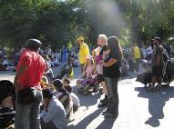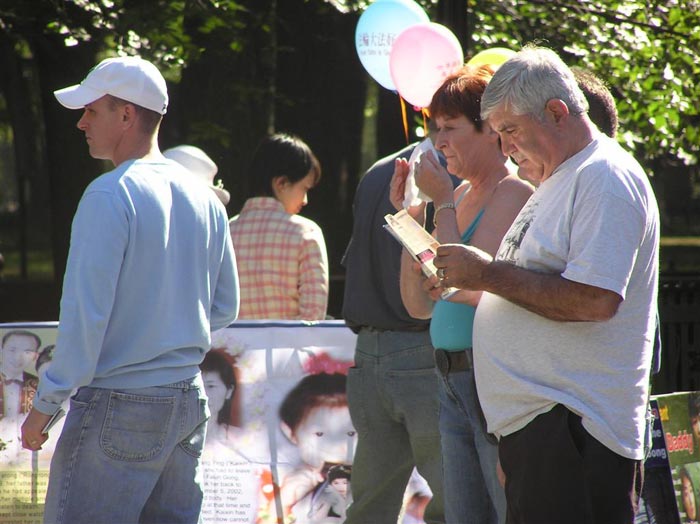 中央公园是曼哈顿人周末休闲的好去处。这一天秋阳和煦,公园内游人如织,人们或携家带口,或访朋会友。义演活动中,人们或阅读传单,或签名支持反迫害和营救受迫害法轮功儿童活动。