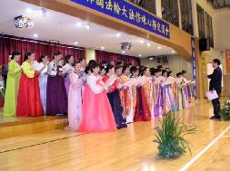 70人合唱大法弟子创作的歌曲“得度”、“为你而来”、“法轮大法好”