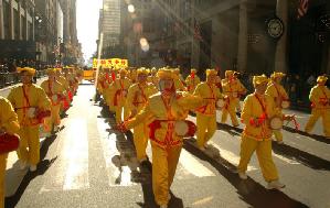 今年恰逢二战胜利60周年,游行规模比以往更为宏大,有退伍和现役军人及各式军乐和仪仗队,数以百计的队列方阵和花车参加了游行。参加的众多团体中优雅祥和的法轮功队伍让人惊喜和感动,观看游行者在赞叹之余纷纷鼓掌表示欢迎和支持。