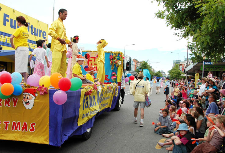 新西兰基督城圣诞节游行 法轮大法放异彩(图)