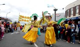 【明慧网2005年11月27日】2005年11月26日,新西兰首都惠灵顿法轮功学员参加惠灵顿LOWER HUTT圣诞节游行。飘逸的仙女队、热闹的腰鼓队、优美的功法演示,无不带给人们祥和美好。学员们的精彩表演,带给了观众法轮大法的福音。