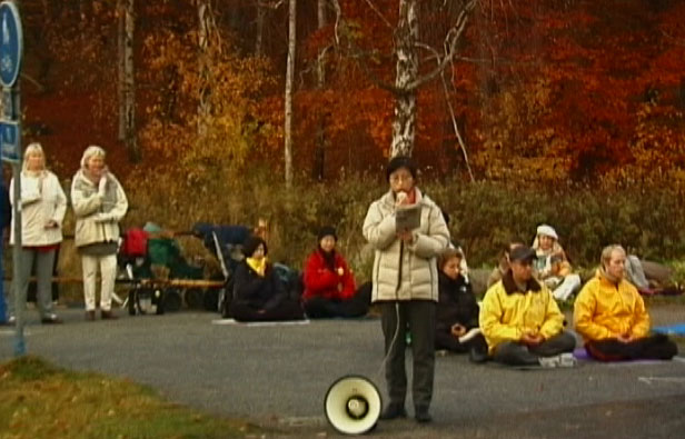 瑞典学员中使馆前宣读法轮大法学会公告(图)