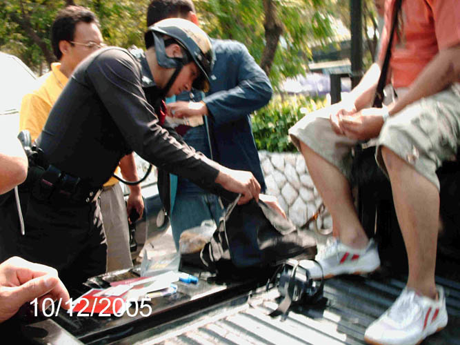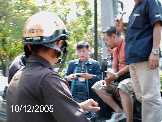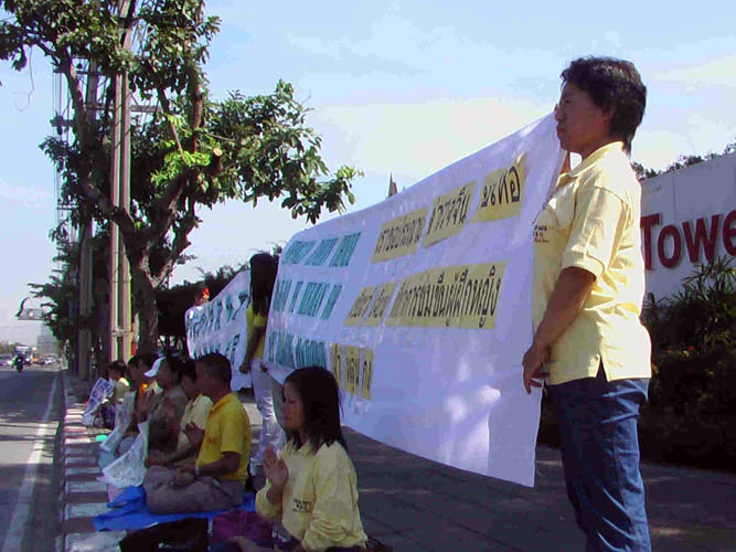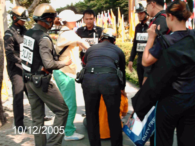 泰国世界日报2005年12月9日刊登了关于此活动的图片新闻。但自12月9日开始,接连来了许多警察,以查证件为由企图带走法轮功学员。尤其是12月10日将近中午十二点,一些警察和车辆在中共使馆进进出出,在其指引下数十名警察、便衣穿过马路,强行搜法轮功学员的包,拖拉人,抢横幅等,造成很大干扰。当学员告知警察法轮功真象及揭露中使馆的恶行后,有警察表示他们并不想来,是中共使馆叫做的。