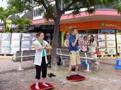一位穿绿衣服的孩子了解真象后,拿了英文版的《法轮功》,表示要回去看。他旁边的华人孩子则表示,回家后要告诉家人,法轮功学员在中国受迫害的真象。