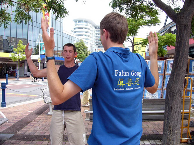 还有一位中国留学生通过学员讲真象,了解了自焚伪案是中共邪党所编,明白了法轮功学员在中国受到的迫害。他拿了许多真象资料和《九评》,说要带回国给父母和亲朋好友看。