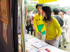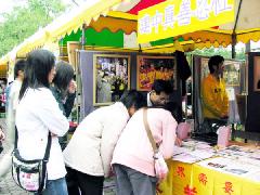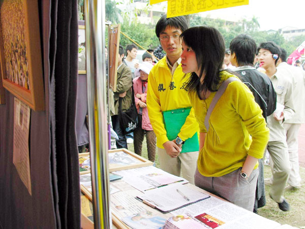 校庆当天的活动繁多,各种表演目不暇给,整个校园洋溢着青春和欢笑。法轮功社团展位不大,只能展出部份的大法弟子证实法摄影展图片,但这些作品祥和与威严的气氛,牢牢的吸引了人们的目光。展位旁醒目的文字提醒人们:“今天不只是建中校庆,也是国际人权日。让我们在台湾享受自由民主的时候,不要忘了他们……”