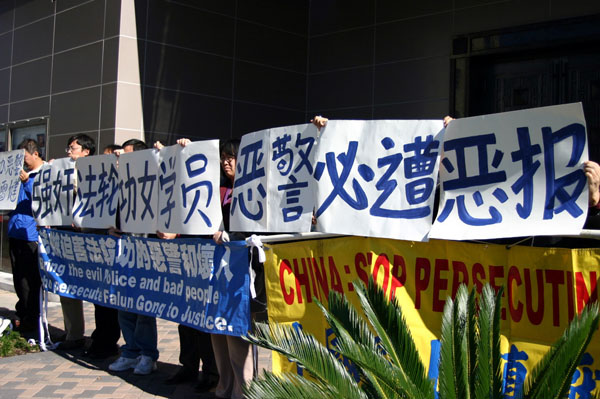 美国法轮功学员谴责中共警察强暴罪行