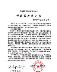 ![]() 济南律师、大法弟子刘如平被非法劳教的决定书 |