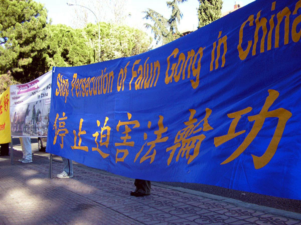 • 西班牙学员中使馆前强烈谴责中共恶警兽行(图)
