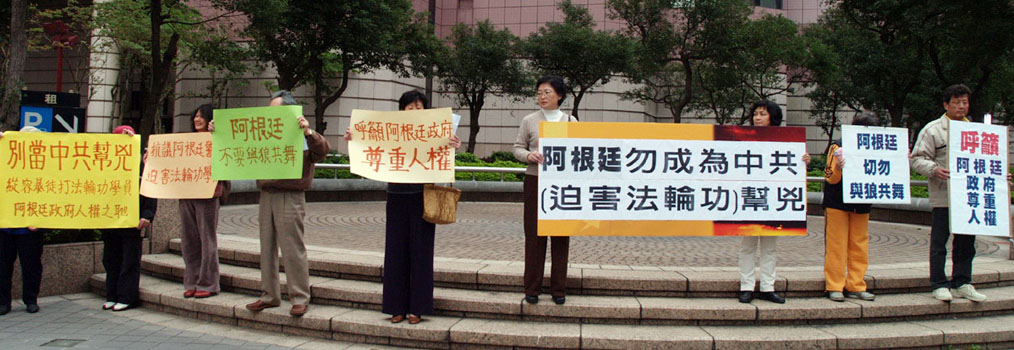 台湾法轮大法学会并要求,1. 阿根廷政府尽速调查暴力份子,并应严正法办,以维护自由法治人权的国家形象。2. 由于警方未能发挥维持秩序的功能,造成多名法轮功学员和阿根廷公民受伤,要求阿政府应立即向受伤者公开道歉,并保证未来不再有类似行为再度发生。