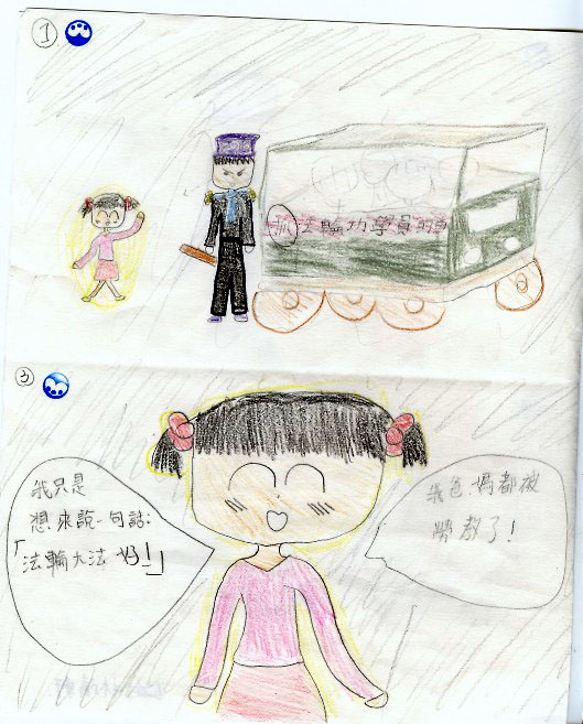 正在画图的小弟子们闻言都问:“那后来呢?她有没有被抓……”老师说文章中说当时刚抓完一车大法弟子的警察是沉默的,但是小女孩后来去哪里呢?她还有没有钱生活跟吃饭呢?她会不会回家?家里有没有被查封?回家以后还有没有亲戚邻居肯照顾她?她又会不会照顾自己?这些问题我想我们现在还无法知道……,如果我们现在不为他们做什么,那么这些数以百计、数以千计无辜失去父母的孩子,就只能这样无声无息的慢慢消失在茫茫人海里了……