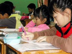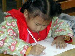 ![]() 连四、五岁的小女孩都不厌其烦的仔细画着四幅图画 |