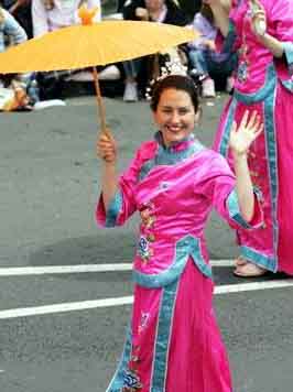 ![]() 游行队伍 | ![]() 向观众招手致意的西人学员(豪域区时报图片) |