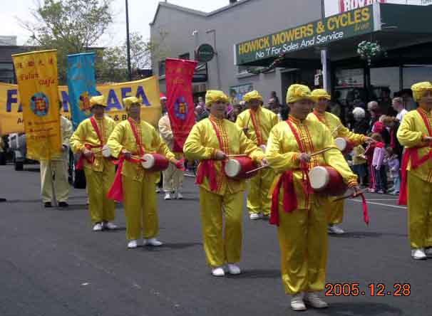 主办单位豪域区时报(Times)称法轮功团队为多彩的法轮大法队伍(Colorful Falun Dafa)。此次游行,学员们的游行队伍中既有着金黄色衣装的腰鼓队,又有色彩亮丽的中国民族服饰、仙女装,西人学员及小弟子在彩车上展示法轮功舒缓祥和的功法,广受欢迎。
