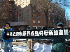 在中使馆前坚持抗议长达六年的法轮功学员代表陶妈妈,悲愤的说:“站在这里,我不知道我该说什么。愤怒和悲痛都不足以表达我的心情。光天化日之下,在我的祖国,竟发生了这样的事情。恶警强奸了相当于他母亲年龄的法轮功学员!法轮功学员修炼真、善、忍,那是为真理的坚持,不是逆来顺受!我们可以忍,但天都不能忍,神都不能忍!恶警一定要被绳之以法!我们一天也不要等了,这样的事情决不能再发生!”