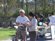 在本次爱心周活动期间,法轮大法学员在图书馆前展示图片、進行功法表演,并现场回答师生的提问。优美的音乐、祥和舒缓的功法演示,深深的感染着路过的师生和周围展位的学生社团成员。他们有的主动过来索取洪法资料,也有的表示对法轮大法的浓厚兴趣。有一个学生还和学员分享他们在纽约见到的法轮大法弟子讲真象的情况。