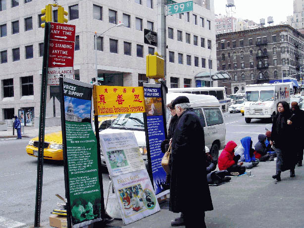 不同国籍的法轮功学员曼哈顿街头冒风雪讲真象(图)