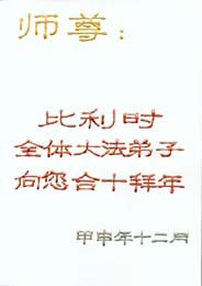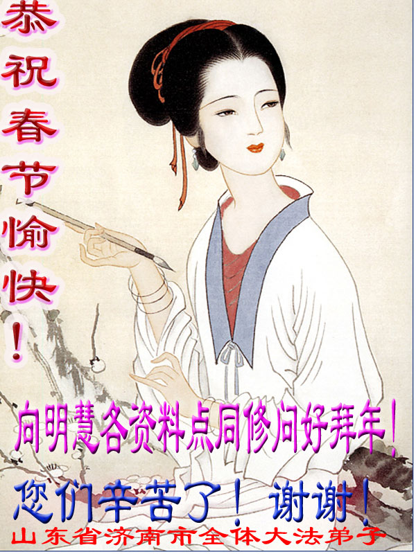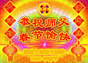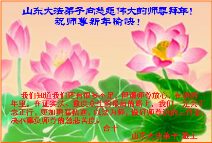 敬爱的师父:您好,您辛苦了,在新年到来之际,弟子们更加想念师父,我们山东潍坊全体大法弟子给您拜年了!