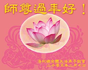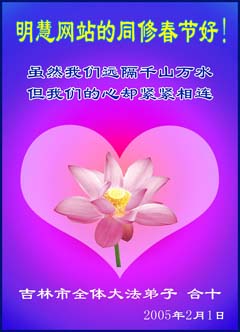 每逢佳节倍思亲。在新春佳节来临之际,让我们双手合十,给慈悲伟大的师尊拜年:您辛苦了!弟子们好想念您!同时我代表那些没有条件上网、而又非常想在新年时向师尊问好的大法弟子,祝师尊新年好!请师尊放心,我们在这正法的最后时刻一定会“坚修大法紧随师”,走好证实法的每一步。