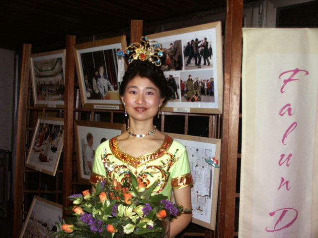 庆祝活动的高潮是法轮功学员表演的舞蹈-敦煌。这个舞蹈源于在中国西北部丝绸之路东端的敦煌文化,19世纪那里发掘出藏有30000件4-10世纪的经卷的石窟,这些石窟中的一些壁画表现的正是舞姿翩翩的飞天。